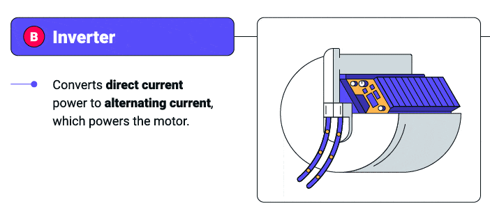 Most Electric cars convert direct current electricity into alternating current electricity.